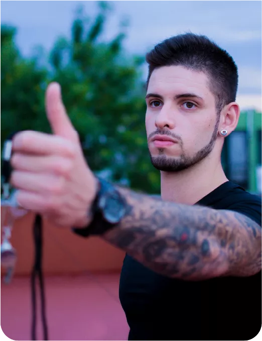 ENTRENAR CON TIAGO SIGNIFICA TENER UN ENTRENADOR QUE SE ENFOCA EN CADA DETALLE. NO SÓLO PERSONALIZA EL ENTRENAMIENTO SEGÚN TUS INTERESES Y METAS, SINO QUE OBSERVA Y CORRIGE CADA POSTURA EN TODOS LOS EJERCICIOS. ADEMÁS, VUELVE LAS CLASES UN DESAFÍO DONDE TE MOTIVA A SUPERARTE Y A ALCANZAR TUS OBJETIVOS.