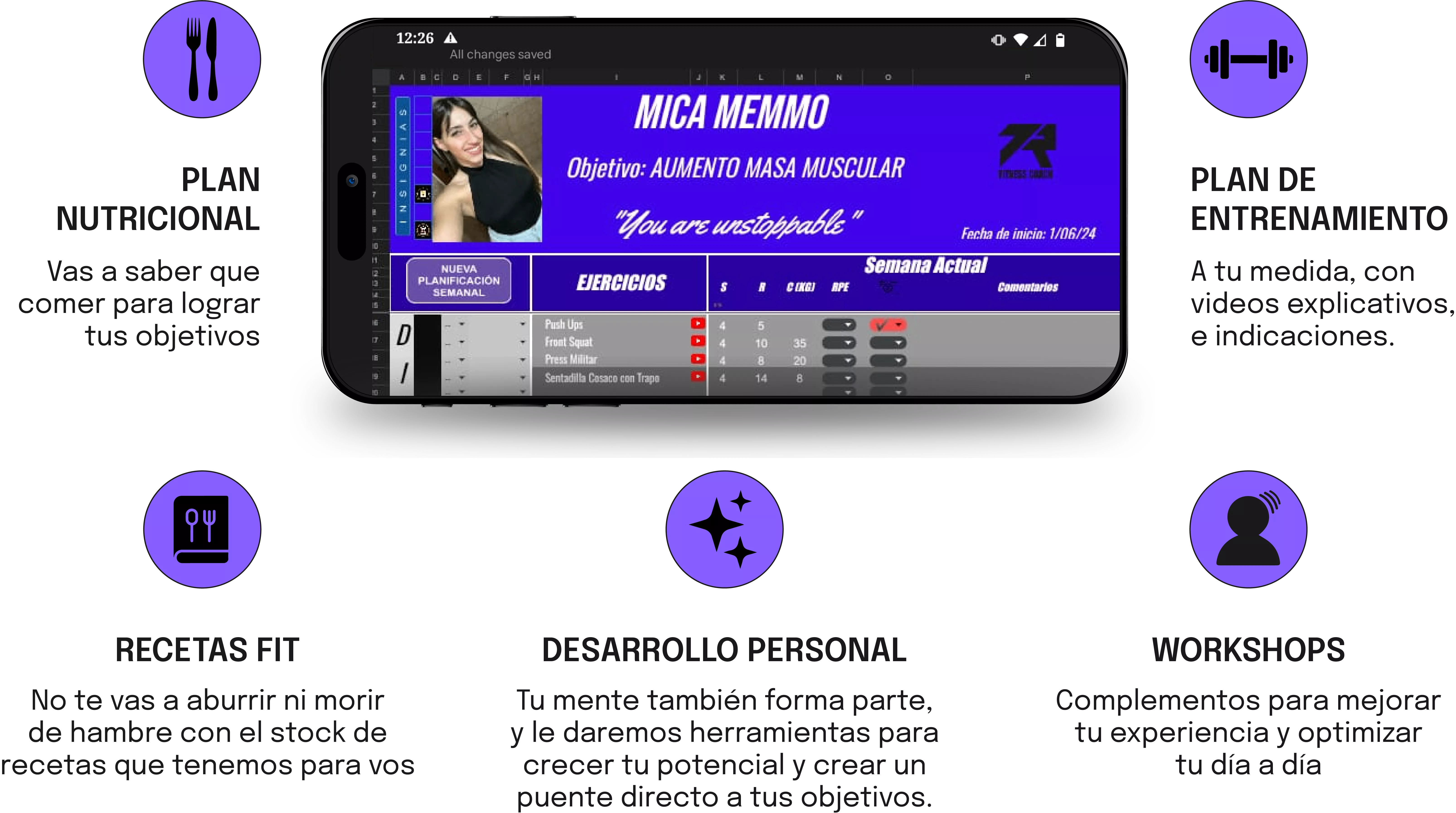 Entrenamiento a medida, alimentación personalizada a tus posibilidades y gustos, cientos de recetas para ampliar tu